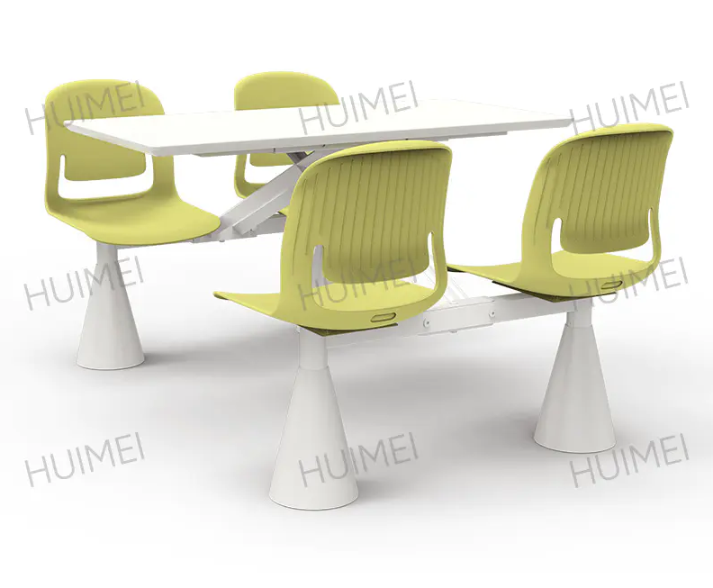 The main features of canteen one-piece dining table and chairs are structural integration, durability, space efficiency, and ease of maintenance. Unlike separate table and chair combinations, one-piece (or fixed-seat) canteen furniture connects the seating directly to the table frame as a single structural unit. This design eliminates loose chairs that can be moved, stacked carelessly, or lost, making it the preferred choice for high-traffic institutional dining environments such as school cafeterias, factory canteens, hospital dining halls, and fast-food restaurants where throughput, hygiene, and long-term cost of ownership are the primary procurement criteria.
